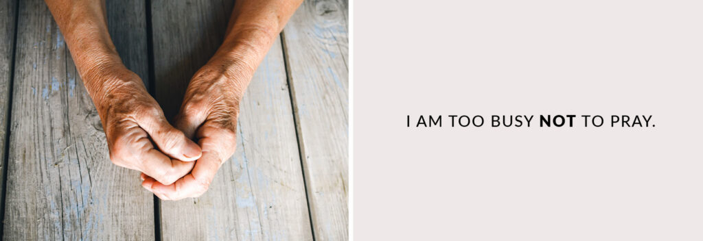 I knew that much of what we were going through was the result of spiritual warfare. I also knew that prayer was the most powerful weapon God had given us. And yet, as I juggled sick children, lived out of a suitcase, and attempted to prepare for travel and speaking despite my own weak health, the thought that kept running through my mind was, I’m too busy to pray. My prayers had been rushed and scattered instead of powerful and passionate, but it didn’t seem possible to change that pattern in the midst of such intensity.